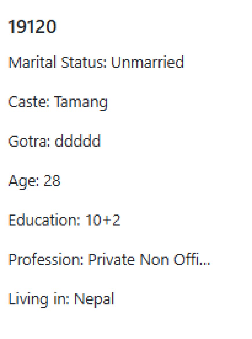 मेरो प्राथमिकता के के हो र मैले कस्तो जीवनसाथी खोजेको भनेर विहेवारीलाई भनेको छु । यदी हजुरहरु उक्त प्राथमिकता भित्र पर्नु हुन्छ भने विहेवारीलाई सम्पर्क गर्नुहोला । उहाँले हाम्रो भेटघाट गराइदिनु होला वा कुरा गराइदिनुहोला । त्यसपछि हामी सिधै कुरा गर्दा हुन्छ ।