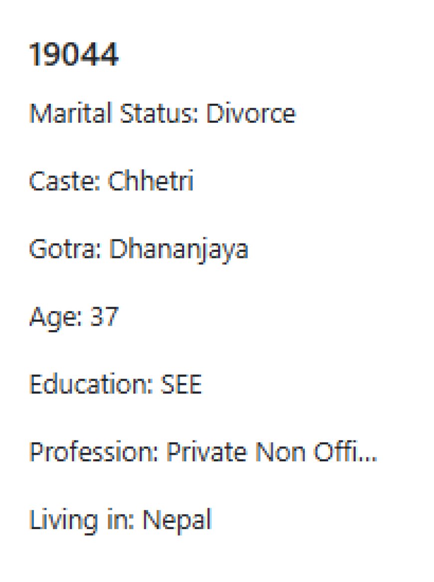 मेरो प्राथमिकता के के हो र मैले कस्तो जीवनसाथी खोजेको भनेर विहेवारीलाई भनेको छु । यदी हजुरहरु उक्त प्राथमिकता भित्र पर्नु हुन्छ भने विहेवारीलाई सम्पर्क गर्नुहोला । उहाँले हाम्रो भेटघाट गराइदिनु होला वा कुरा गराइदिनुहोला । त्यसपछि हामी सिधै कुरा गर्दा हुन्छ ।