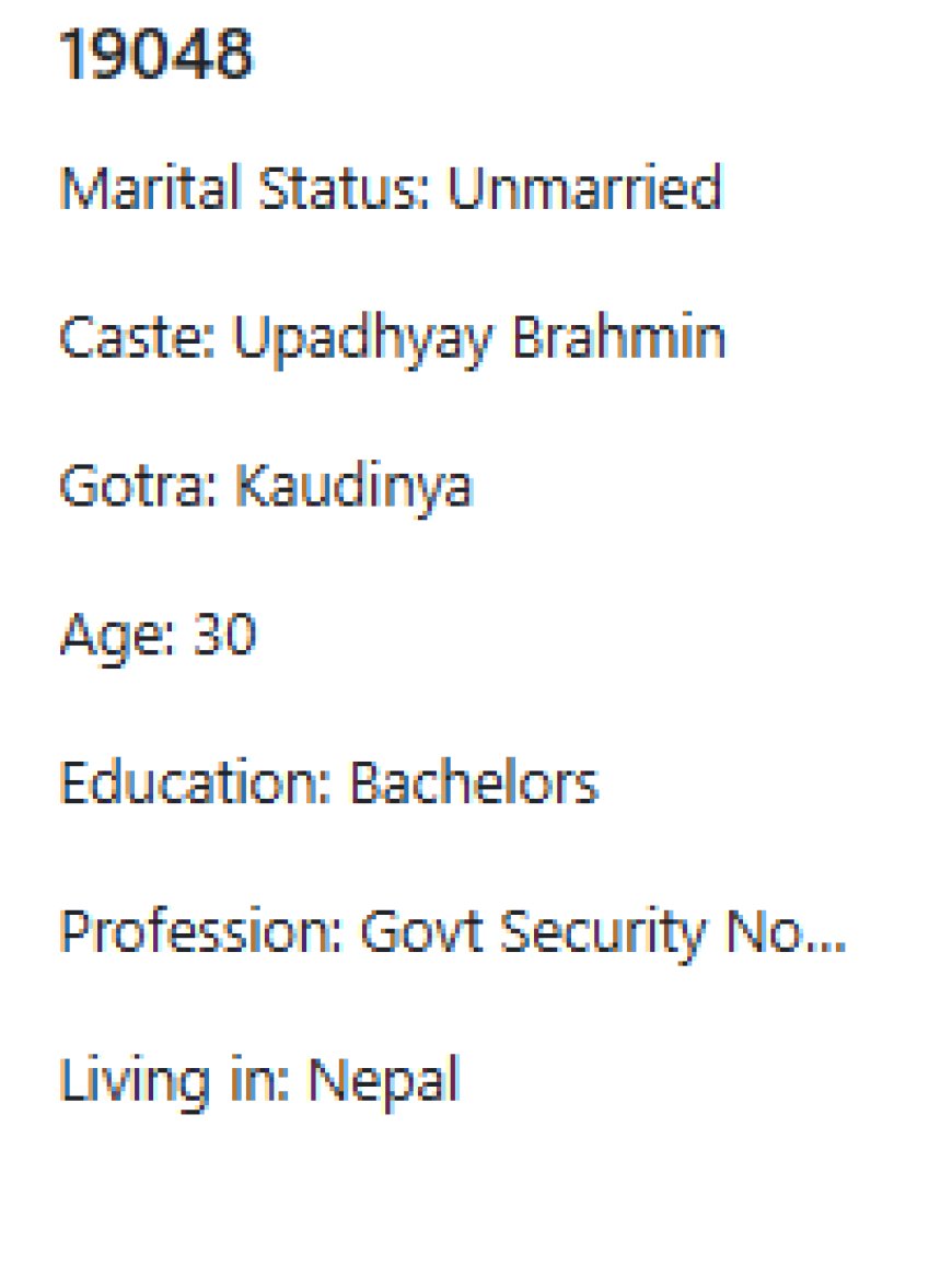 मेरो प्राथमिकता के के हो र मैले कस्तो जीवनसाथी खोजेको भनेर विहेवारीलाई भनेको छु । यदी हजुरहरु उक्त प्राथमिकता भित्र पर्नु हुन्छ भने विहेवारीलाई सम्पर्क गर्नुहोला । उहाँले हाम्रो भेटघाट गराइदिनु होला वा कुरा गराइदिनुहोला । त्यसपछि हामी सिधै कुरा गर्दा हुन्छ ।