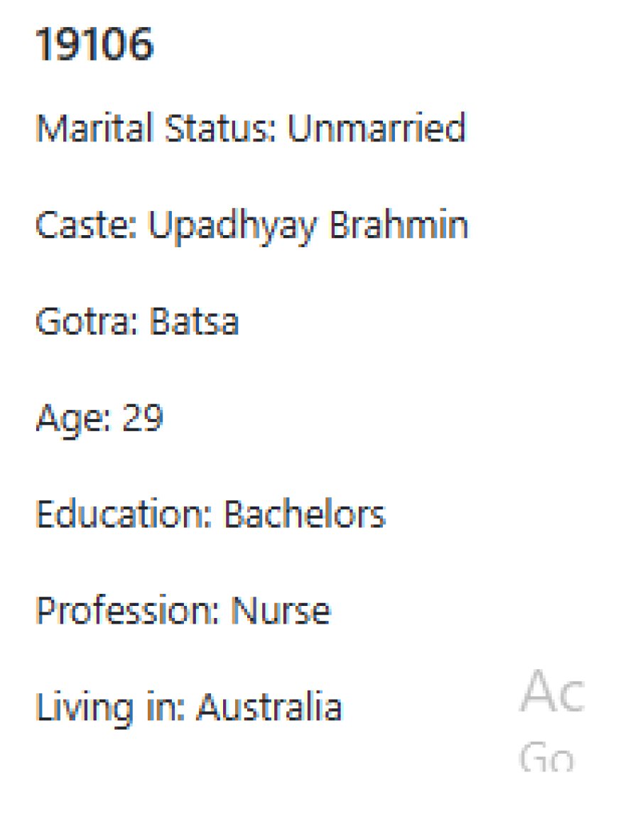 मेरो प्राथमिकता के के हो र मैले कस्तो जीवनसाथी खोजेको भनेर विहेवारीलाई भनेको छु । यदी हजुरहरु उक्त प्राथमिकता भित्र पर्नु हुन्छ भने विहेवारीलाई सम्पर्क गर्नुहोला । उहाँले हाम्रो भेटघाट गराइदिनु होला वा कुरा गराइदिनुहोला । त्यसपछि हामी सिधै कुरा गर्दा हुन्छ ।