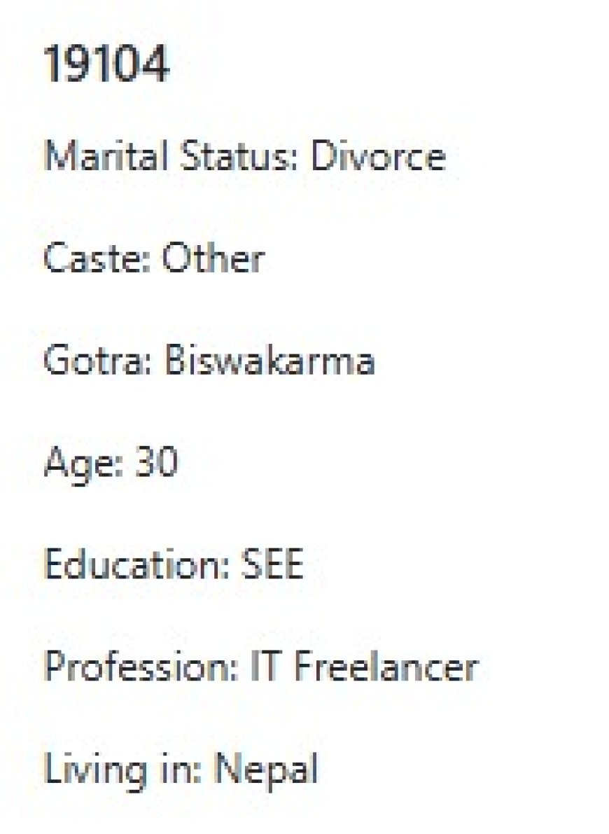 मेरो प्राथमिकता के के हो र मैले कस्तो जीवनसाथी खोजेको भनेर विहेवारीलाई भनेको छु । यदी हजुरहरु उक्त प्राथमिकता भित्र पर्नु हुन्छ भने विहेवारीलाई सम्पर्क गर्नुहोला । उहाँले हाम्रो भेटघाट गराइदिनु होला वा कुरा गराइदिनुहोला । त्यसपछि हामी सिधै कुरा गर्दा हुन्छ ।