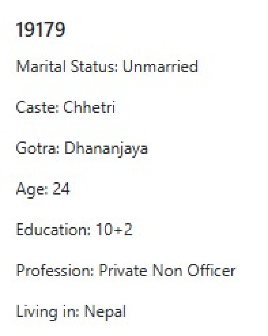 मेरो प्राथमिकता के के हो र मैले कस्तो जीवनसाथी खोजेको भनेर विहेवारीलाई भनेको छु । यदी हजुरहरु उक्त प्राथमिकता भित्र पर्नु हुन्छ भने विहेवारीलाई सम्पर्क गर्नुहोला । उहाँले हाम्रो भेटघाट गराइदिनु होला वा कुरा गराइदिनुहोला । त्यसपछि हामी सिधै कुरा गर्दा हुन्छ ।