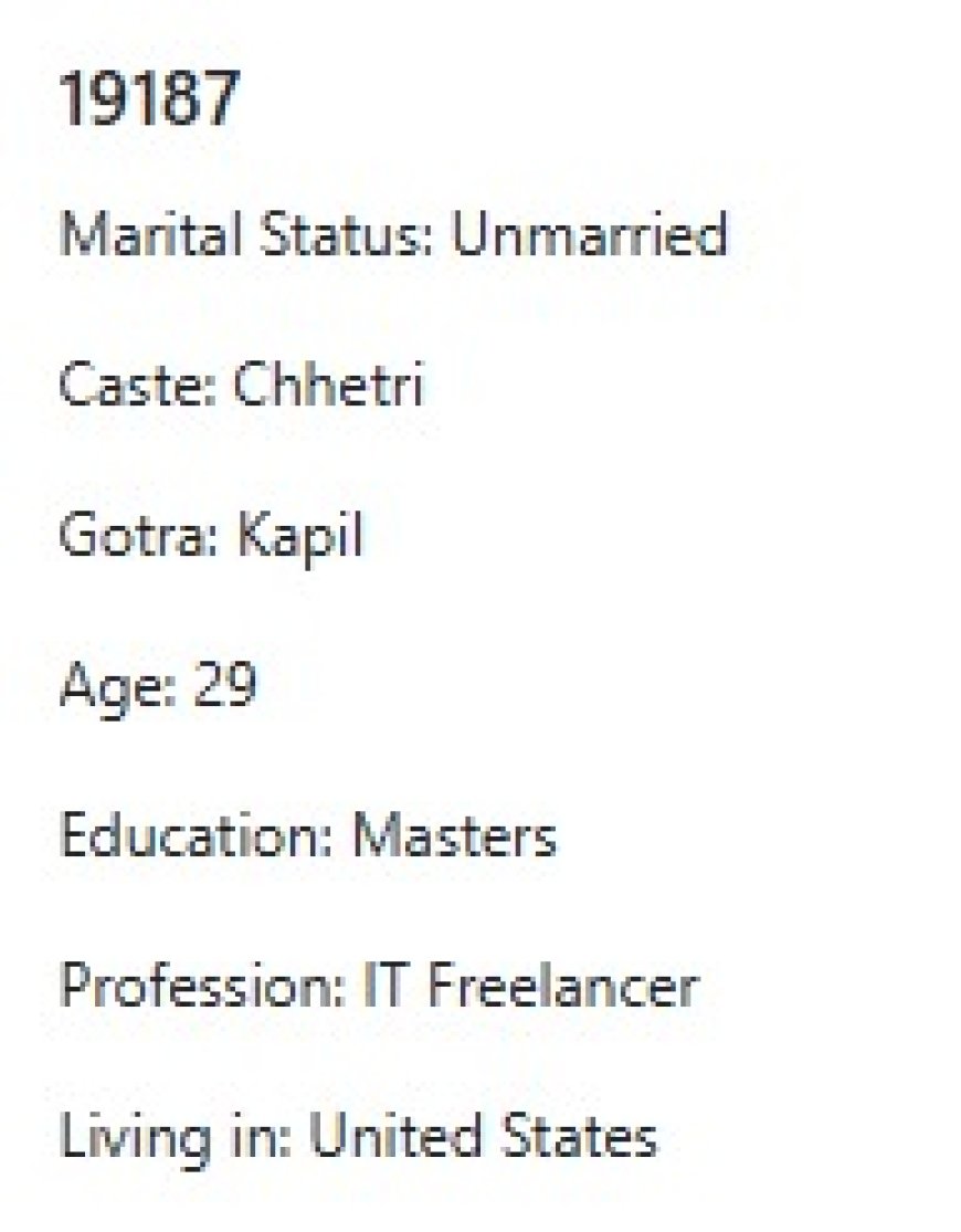 मेरो प्राथमिकता के के हो र मैले कस्तो जीवनसाथी खोजेको भनेर विहेवारीलाई भनेको छु । यदी हजुरहरु उक्त प्राथमिकता भित्र पर्नु हुन्छ भने विहेवारीलाई सम्पर्क गर्नुहोला । उहाँले हाम्रो भेटघाट गराइदिनु होला वा कुरा गराइदिनुहोला । त्यसपछि हामी सिधै कुरा गर्दा हुन्छ ।