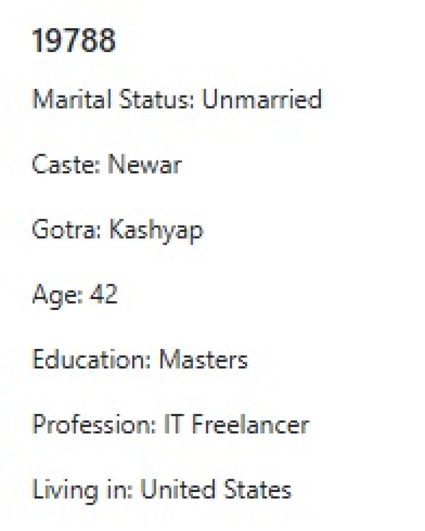 मेरो प्राथमिकता के के हो र मैले कस्तो जीवनसाथी खोजेको भनेर विहेवारीलाई भनेको छु । यदी हजुरहरु उक्त प्राथमिकता भित्र पर्नु हुन्छ भने विहेवारीलाई सम्पर्क गर्नुहोला । उहाँले हाम्रो भेटघाट गराइदिनु होला वा कुरा गराइदिनुहोला । त्यसपछि हामी सिधै कुरा गर्दा हुन्छ ।