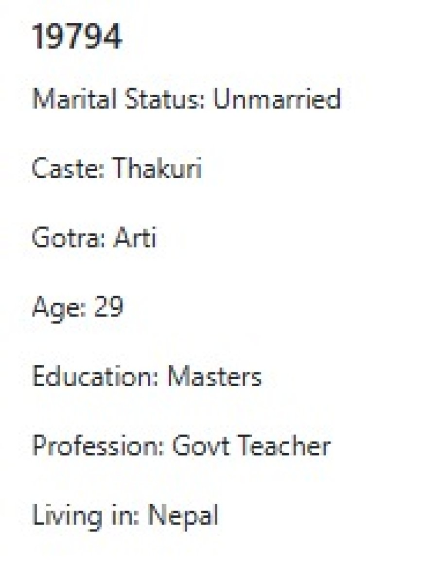 मेरो प्राथमिकता के के हो र मैले कस्तो जीवनसाथी खोजेको भनेर विहेवारीलाई भनेको छु । यदी हजुरहरु उक्त प्राथमिकता भित्र पर्नु हुन्छ भने विहेवारीलाई सम्पर्क गर्नुहोला । उहाँले हाम्रो भेटघाट गराइदिनु होला वा कुरा गराइदिनुहोला । त्यसपछि हामी सिधै कुरा गर्दा हुन्छ ।