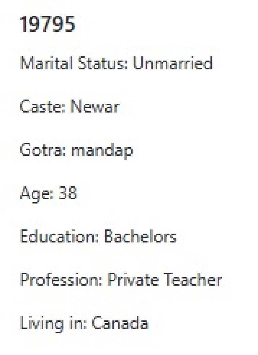 मेरो प्राथमिकता के के हो र मैले कस्तो जीवनसाथी खोजेको भनेर विहेवारीलाई भनेको छु । यदी हजुरहरु उक्त प्राथमिकता भित्र पर्नु हुन्छ भने विहेवारीलाई सम्पर्क गर्नुहोला । उहाँले हाम्रो भेटघाट गराइदिनु होला वा कुरा गराइदिनुहोला । त्यसपछि हामी सिधै कुरा गर्दा हुन्छ ।