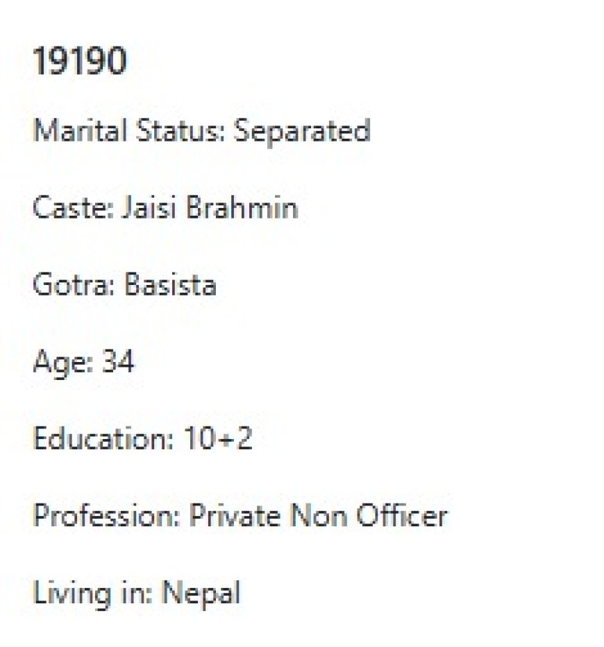 मेरो प्राथमिकता के के हो र मैले कस्तो जीवनसाथी खोजेको भनेर विहेवारीलाई भनेको छु । यदी हजुरहरु उक्त प्राथमिकता भित्र पर्नु हुन्छ भने विहेवारीलाई सम्पर्क गर्नुहोला । उहाँले हाम्रो भेटघाट गराइदिनु होला वा कुरा गराइदिनुहोला । त्यसपछि हामी सिधै कुरा गर्दा हुन्छ ।
