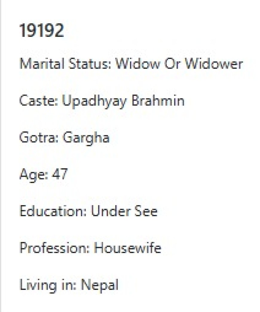 मेरो प्राथमिकता के के हो र मैले कस्तो जीवनसाथी खोजेको भनेर विहेवारीलाई भनेको छु । यदी हजुरहरु उक्त प्राथमिकता भित्र पर्नु हुन्छ भने विहेवारीलाई सम्पर्क गर्नुहोला । उहाँले हाम्रो भेटघाट गराइदिनु होला वा कुरा गराइदिनुहोला । त्यसपछि हामी सिधै कुरा गर्दा हुन्छ ।
