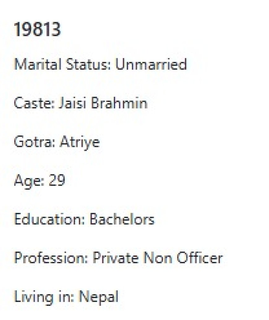 मेरो प्राथमिकता के के हो र मैले कस्तो जीवनसाथी खोजेको भनेर विहेवारीलाई भनेको छु । यदी हजुरहरु उक्त प्राथमिकता भित्र पर्नु हुन्छ भने विहेवारीलाई सम्पर्क गर्नुहोला । उहाँले हाम्रो भेटघाट गराइदिनु होला वा कुरा गराइदिनुहोला । त्यसपछि हामी सिधै कुरा गर्दा हुन्छ ।
