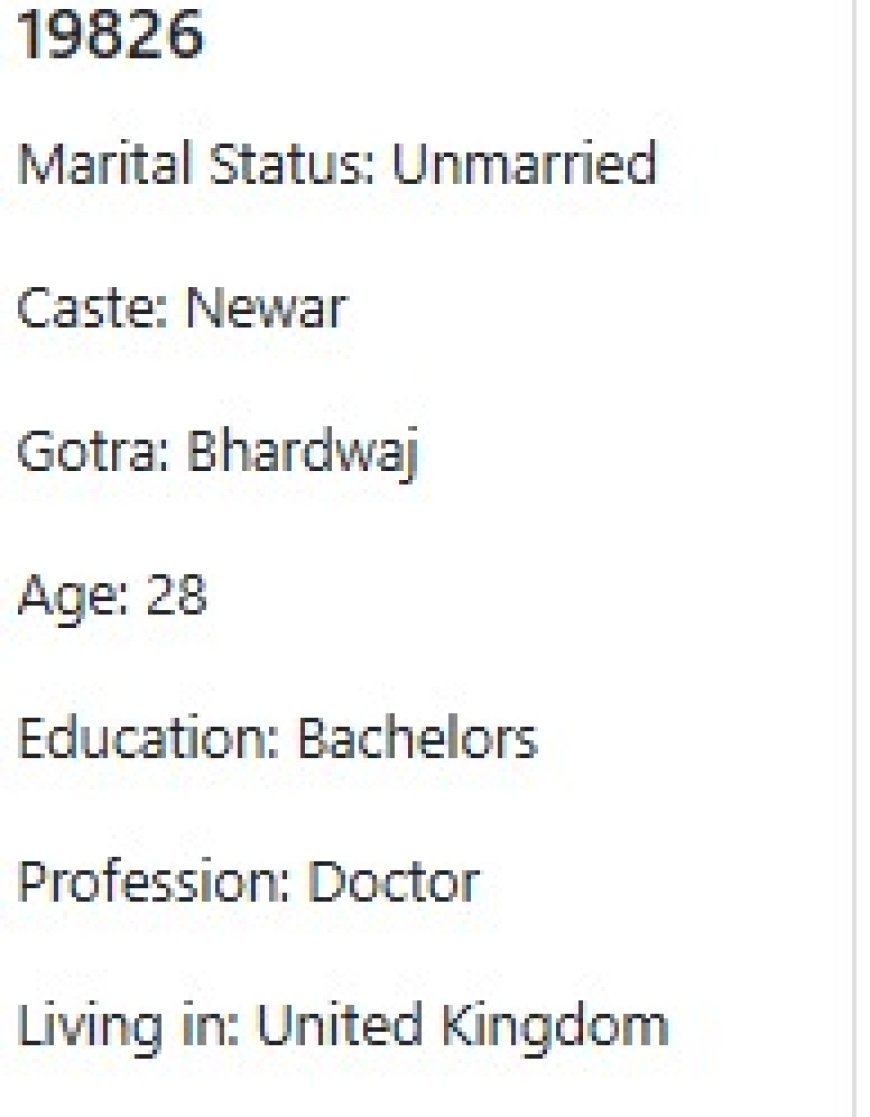 मिकता के के हो र मैले कस्तो जीवनसाथी खोजेको भनेर विहेवारीलाई भनेको छु । यदी हजुरहरु उक्त प्राथमिकता भित्र पर्नु हुन्छ भने विहेवारीलाई सम्पर्क गर्नुहोला । उहाँले हाम्रो भेटघाट गराइदिनु होला वा कुरा गराइदिनुहोला । त्यसपछि हामी सिधै कुरा गर्दा हुन्छ ।