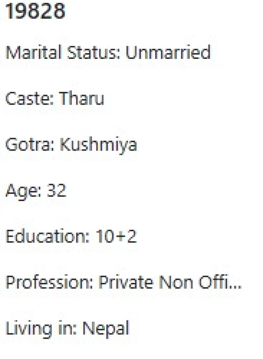मेरो प्राथमिकता के के हो र मैले कस्तो जीवनसाथी खोजेको भनेर विहेवारीलाई भनेको छु । यदी हजुरहरु उक्त प्राथमिकता भित्र पर्नु हुन्छ भने विहेवारीलाई सम्पर्क गर्नुहोला । उहाँले हाम्रो भेटघाट गराइदिनु होला वा कुरा गराइदिनुहोला । त्यसपछि हामी सिधै कुरा गर्दा हुन्छ ।