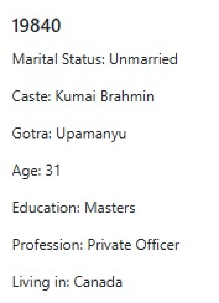 मेरो प्राथमिकता के के हो र मैले कस्तो जीवनसाथी खोजेको भनेर विहेवारीलाई भनेको छु । यदी हजुरहरु उक्त प्राथमिकता भित्र पर्नु हुन्छ भने विहेवारीलाई सम्पर्क गर्नुहोला । उहाँले हाम्रो भेटघाट गराइदिनु होला वा कुरा गराइदिनुहोला । त्यसपछि हामी सिधै कुरा गर्दा हुन्छ ।