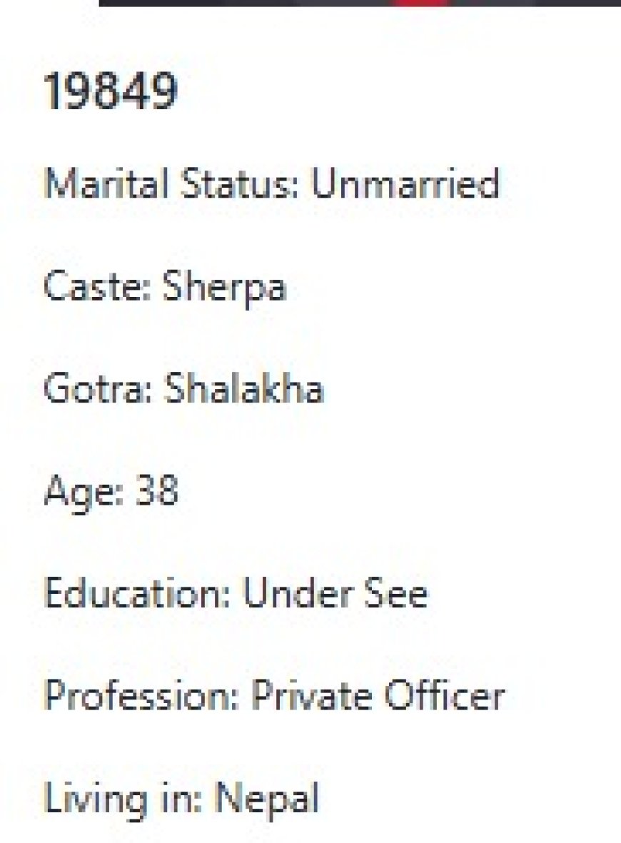 मेरो प्राथमिकता के के हो र मैले कस्तो जीवनसाथी खोजेको भनेर विहेवारीलाई भनेको छु । यदी हजुरहरु उक्त प्राथमिकता भित्र पर्नु हुन्छ भने विहेवारीलाई सम्पर्क गर्नुहोला । उहाँले हाम्रो भेटघाट गराइदिनु होला वा कुरा गराइदिनुहोला । त्यसपछि हामी सिधै कुरा गर्दा हुन्छ ।