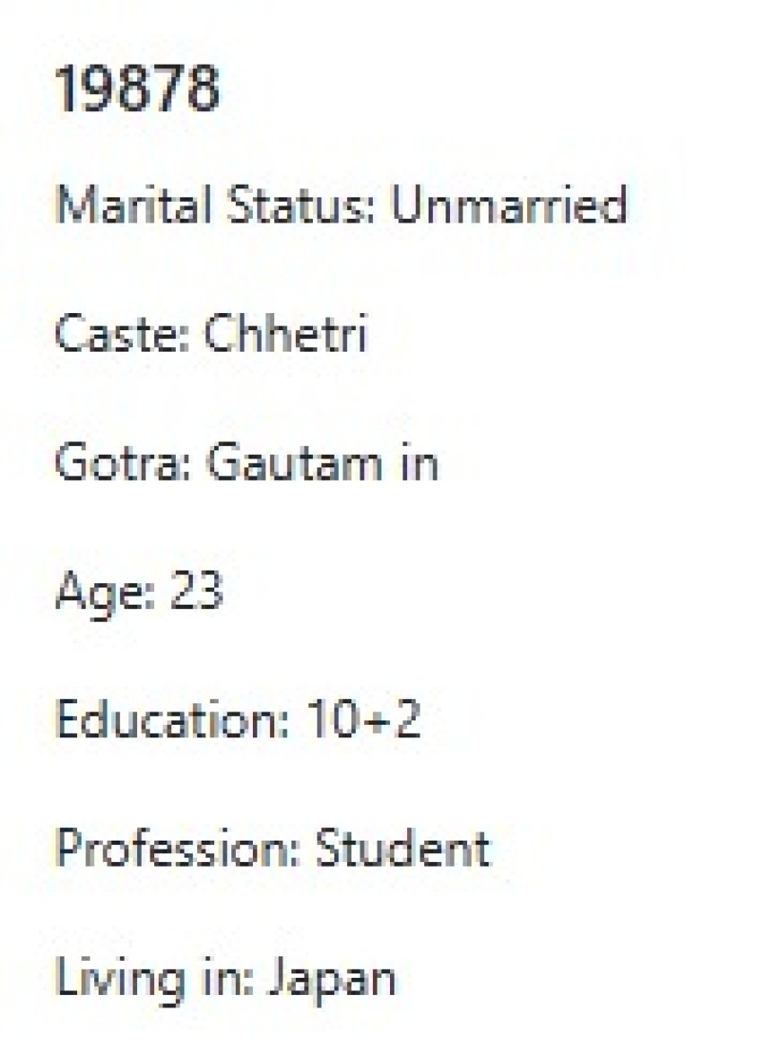 मेरो प्राथमिकता के के हो र मैले कस्तो जीवनसाथी खोजेको भनेर विहेवारीलाई भनेको छु । यदी हजुरहरु उक्त प्राथमिकता भित्र पर्नु हुन्छ भने विहेवारीलाई सम्पर्क गर्नुहोला । उहाँले हाम्रो भेटघाट गराइदिनु होला वा कुरा गराइदिनुहोला । त्यसपछि हामी सिधै कुरा गर्दा हुन्छ ।