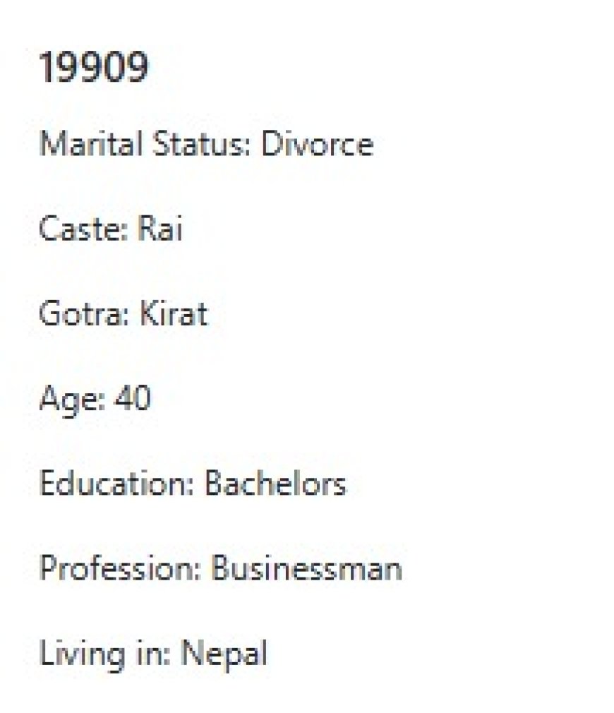 मेरो प्राथमिकता के के हो र मैले कस्तो जीवनसाथी खोजेको भनेर विहेवारीलाई भनेको छु । यदी हजुरहरु उक्त प्राथमिकता भित्र पर्नु हुन्छ भने विहेवारीलाई सम्पर्क गर्नुहोला । उहाँले हाम्रो भेटघाट गराइदिनु होला वा कुरा गराइदिनुहोला । त्यसपछि हामी सिधै कुरा गर्दा हुन्छ ।