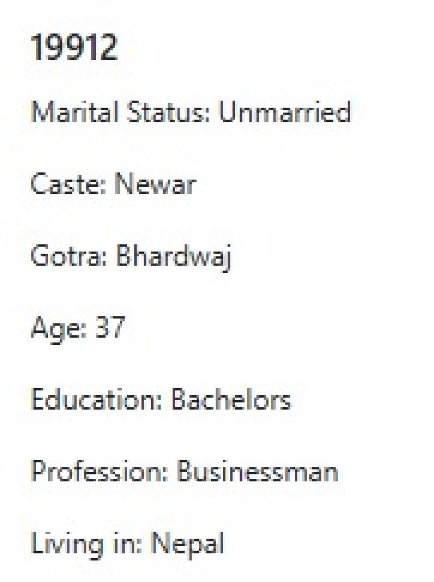 मेरो प्राथमिकता के के हो र मैले कस्तो जीवनसाथी खोजेको भनेर विहेवारीलाई भनेको छु । यदी हजुरहरु उक्त प्राथमिकता भित्र पर्नु हुन्छ भने विहेवारीलाई सम्पर्क गर्नुहोला । उहाँले हाम्रो भेटघाट गराइदिनु होला वा कुरा गराइदिनुहोला । त्यसपछि हामी सिधै कुरा गर्दा हुन्छ ।