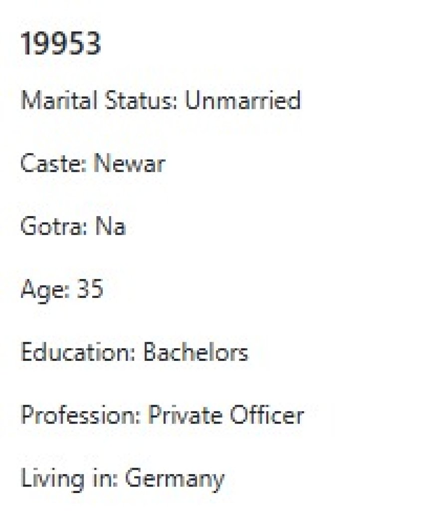 मेरो प्राथमिकता के के हो र मैले कस्तो जीवनसाथी खोजेको भनेर विहेवारीलाई भनेको छु । यदी हजुरहरु उक्त प्राथमिकता भित्र पर्नु हुन्छ भने विहेवारीलाई सम्पर्क गर्नुहोला । उहाँले हाम्रो भेटघाट गराइदिनु होला वा कुरा गराइदिनुहोला । त्यसपछि हामी सिधै कुरा गर्दा हुन्छ ।