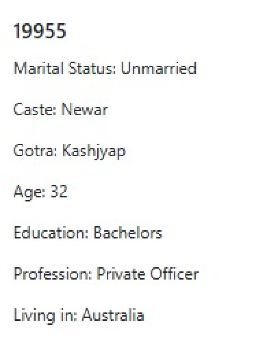 मेरो प्राथमिकता के के हो र मैले कस्तो जीवनसाथी खोजेको भनेर विहेवारीलाई भनेको छु । यदी हजुरहरु उक्त प्राथमिकता भित्र पर्नु हुन्छ भने विहेवारीलाई सम्पर्क गर्नुहोला । उहाँले हाम्रो भेटघाट गराइदिनु होला वा कुरा गराइदिनुहोला । त्यसपछि हामी सिधै कुरा गर्दा हुन्छ ।