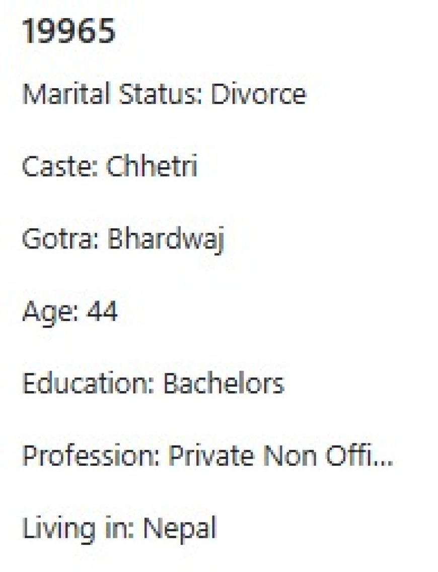 मेरो प्राथमिकता के के हो र मैले कस्तो जीवनसाथी खोजेको भनेर विहेवारीलाई भनेको छु । यदी हजुरहरु उक्त प्राथमिकता भित्र पर्नु हुन्छ भने विहेवारीलाई सम्पर्क गर्नुहोला । उहाँले हाम्रो भेटघाट गराइदिनु होला वा कुरा गराइदिनुहोला । त्यसपछि हामी सिधै कुरा गर्दा हुन्छ ।