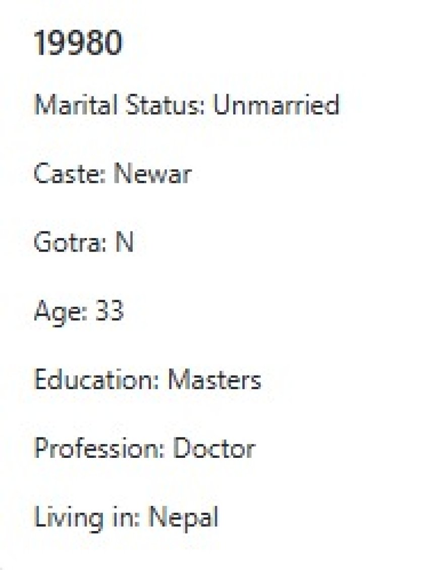 मेरो प्राथमिकता के के हो र मैले कस्तो जीवनसाथी खोजेको भनेर विहेवारीलाई भनेको छु । यदी हजुरहरु उक्त प्राथमिकता भित्र पर्नु हुन्छ भने विहेवारीलाई सम्पर्क गर्नुहोला । उहाँले हाम्रो भेटघाट गराइदिनु होला वा कुरा गराइदिनुहोला । त्यसपछि हामी सिधै कुरा गर्दा हुन्छ ।