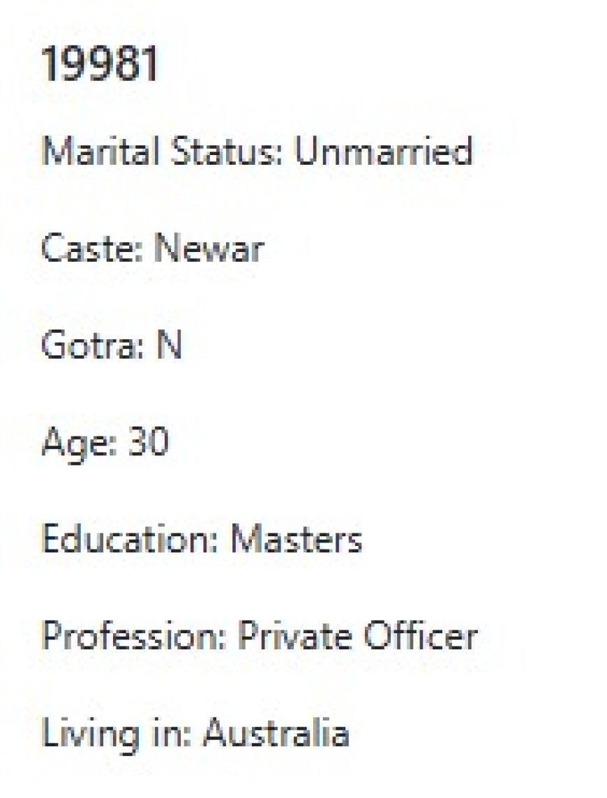 मेरो प्राथमिकता के के हो र मैले कस्तो जीवनसाथी खोजेको भनेर विहेवारीलाई भनेको छु । यदी हजुरहरु उक्त प्राथमिकता भित्र पर्नु हुन्छ भने विहेवारीलाई सम्पर्क गर्नुहोला । उहाँले हाम्रो भेटघाट गराइदिनु होला वा कुरा गराइदिनुहोला । त्यसपछि हामी सिधै कुरा गर्दा हुन्छ ।